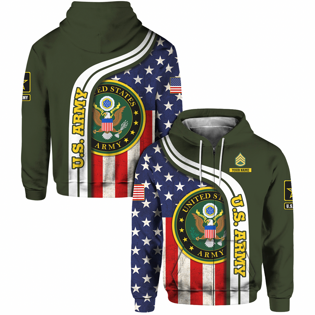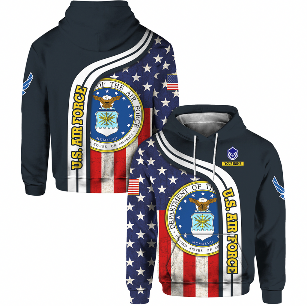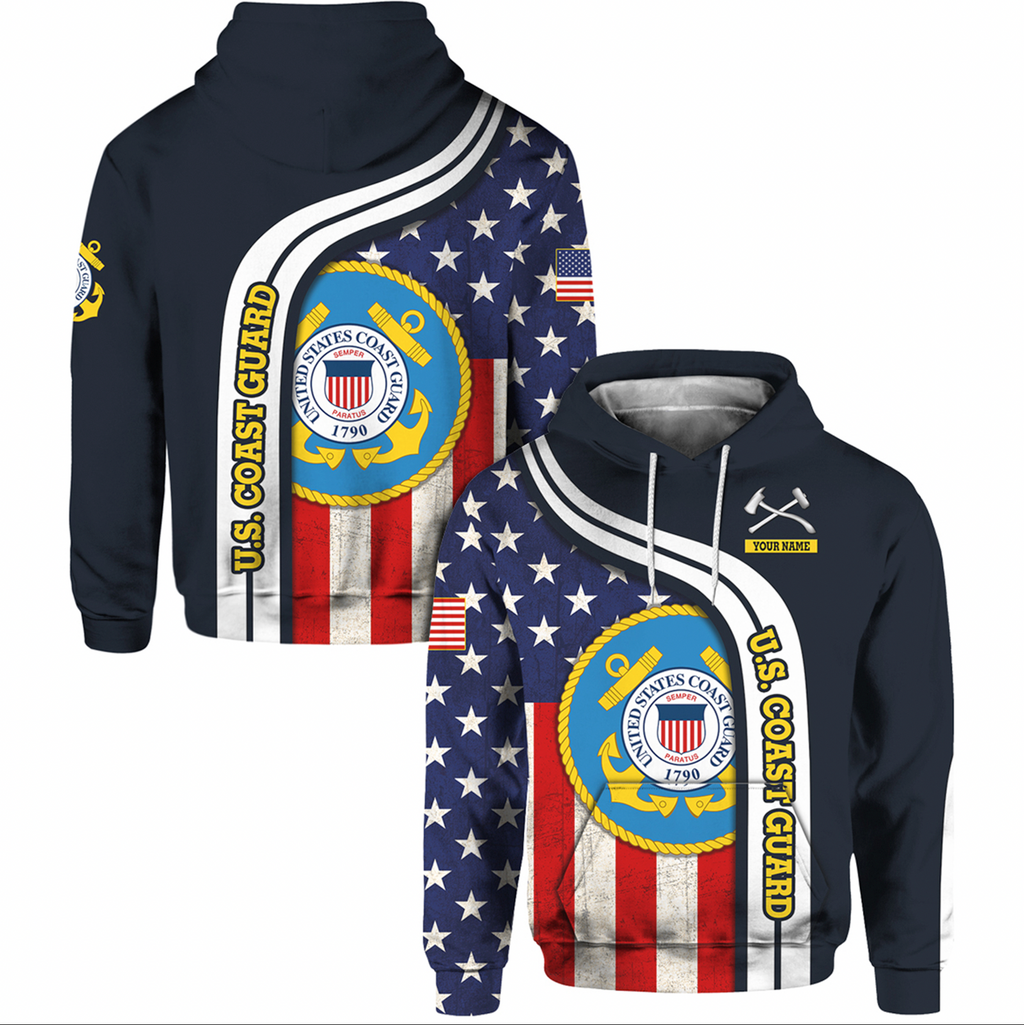 Custom 3D All Over Prints Hoodie, Personalized Name And Military Logo, USA Flag