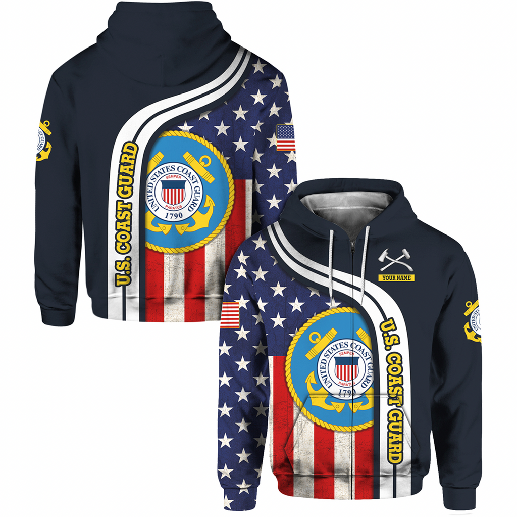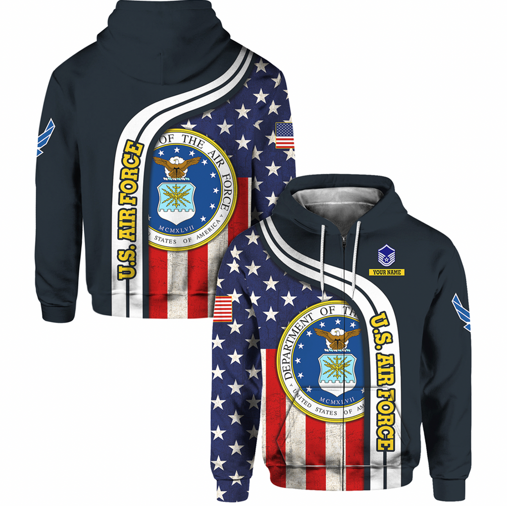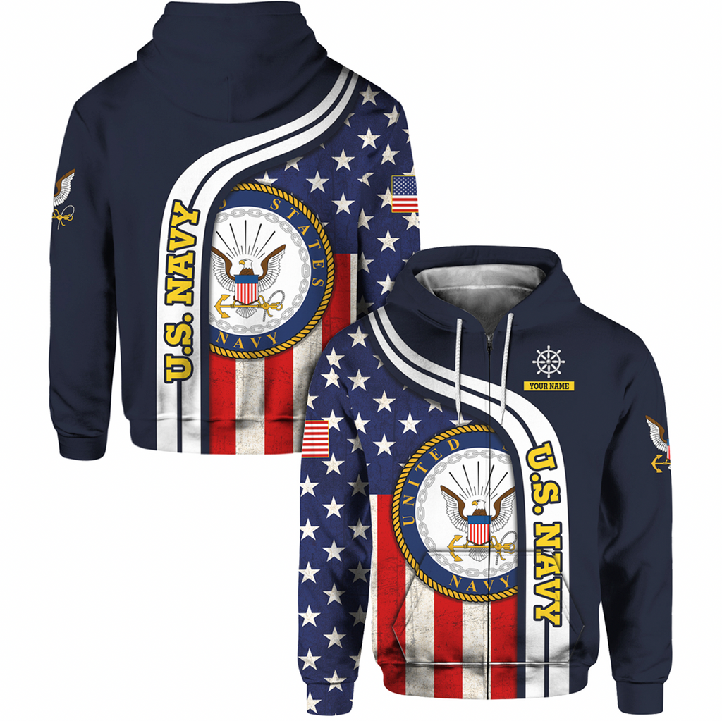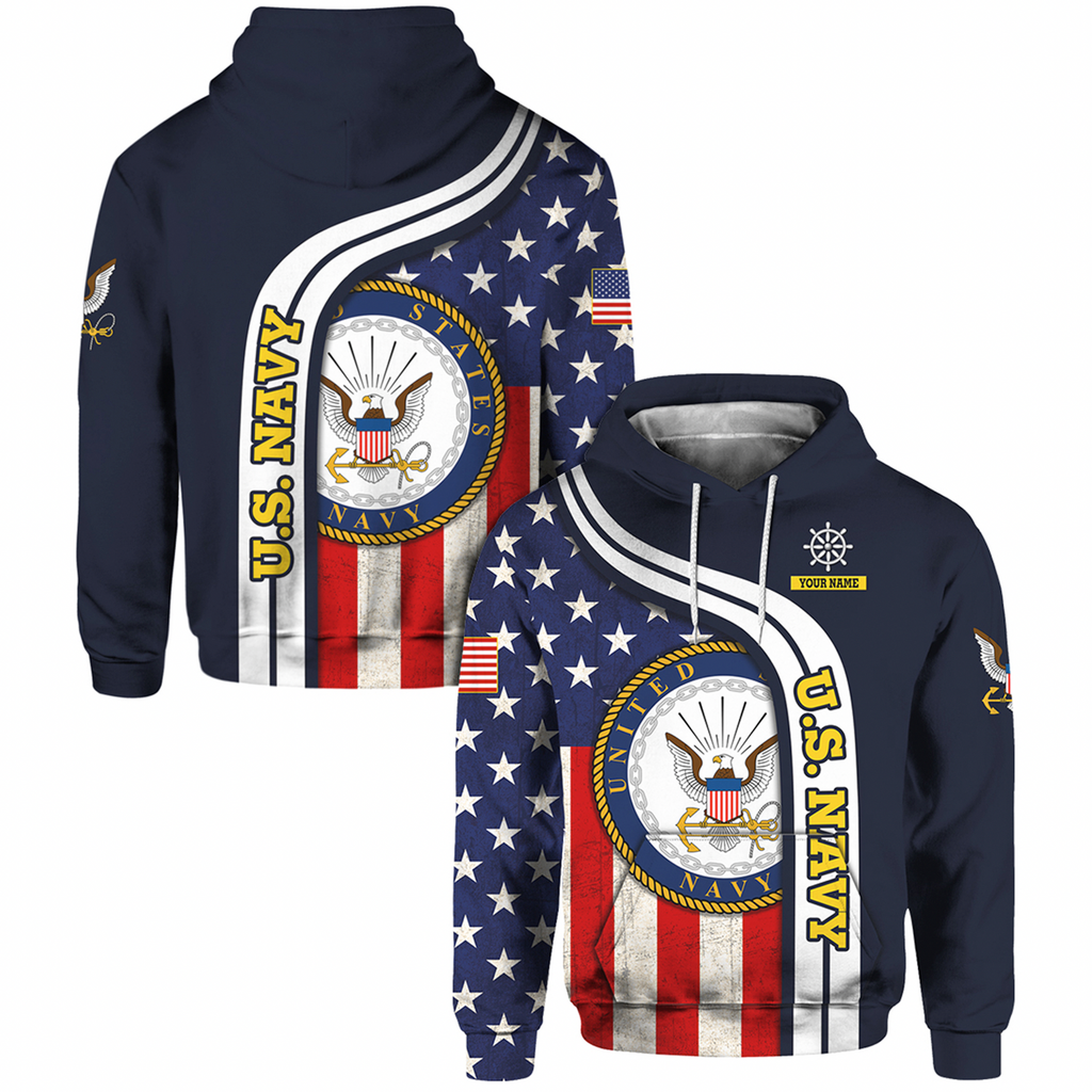 Custom 3D All Over Prints Hoodie, Personalized Name And Military Logo, USA Flag