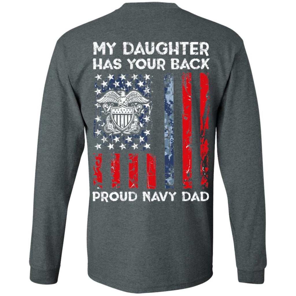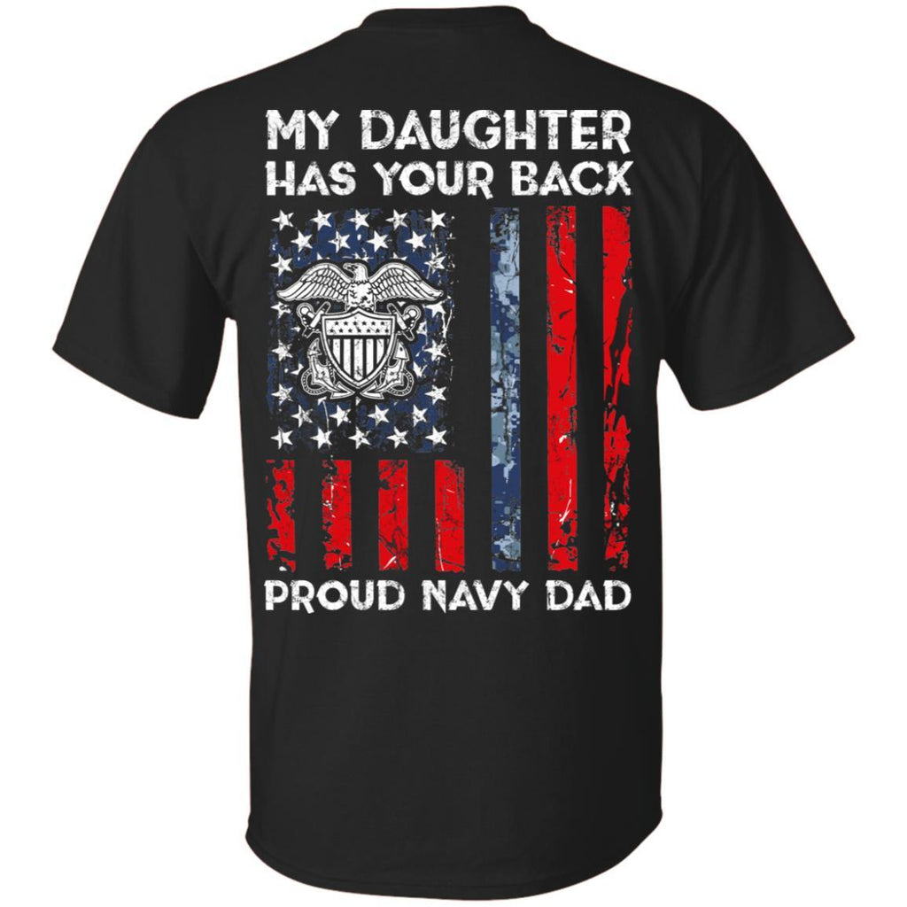My Daughter Has Your Back - Proud Navy Dad Men T Shirt On Back