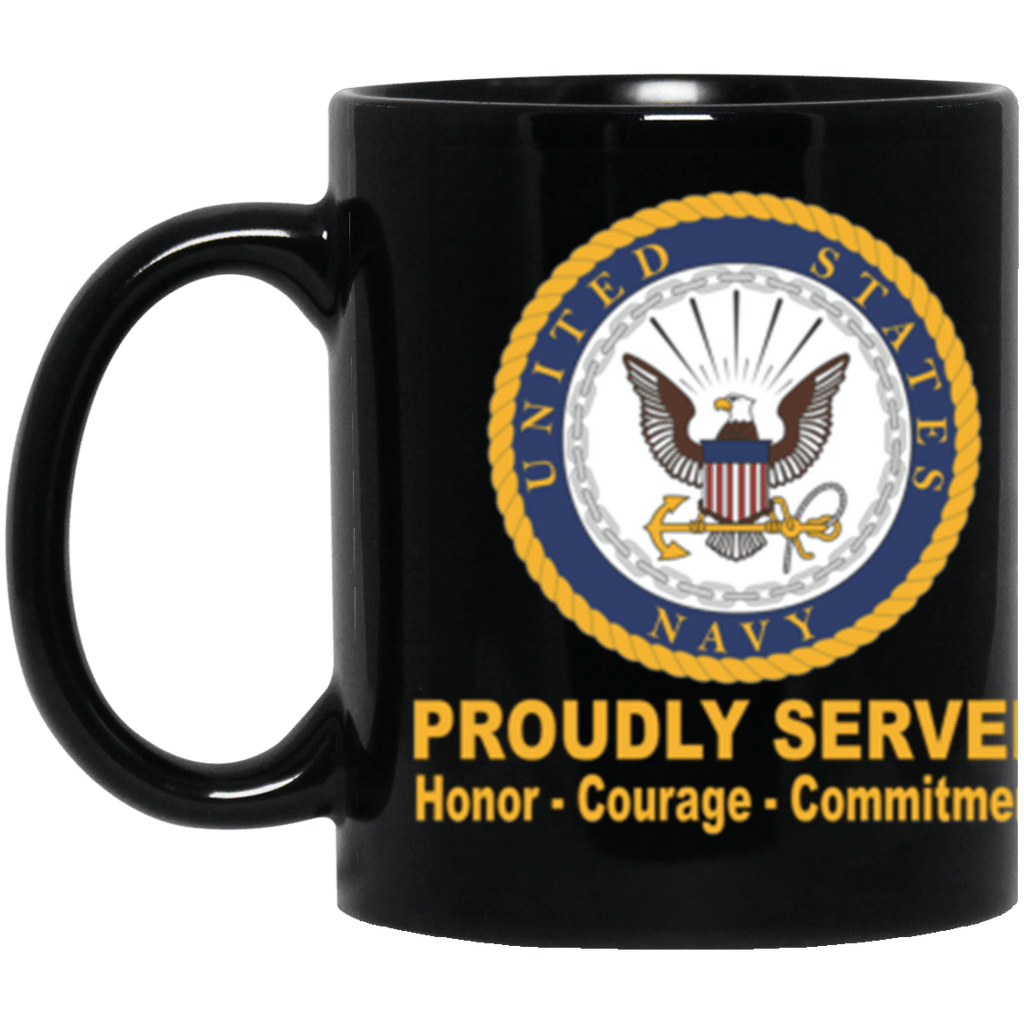 US Navy Logo Proudly Served Core Values 11 oz. Black Mug