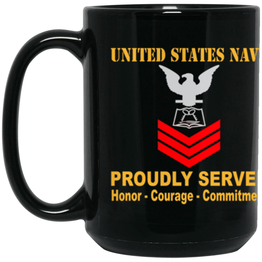 US Navy Mess Management Specialist Navy MS E-6 Red Stripe 15 oz. Black Mug